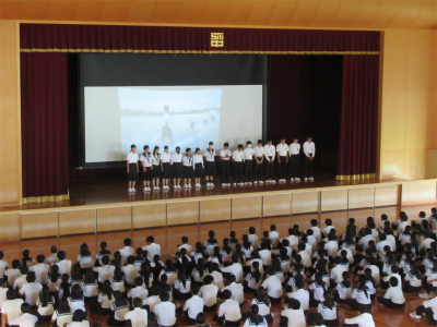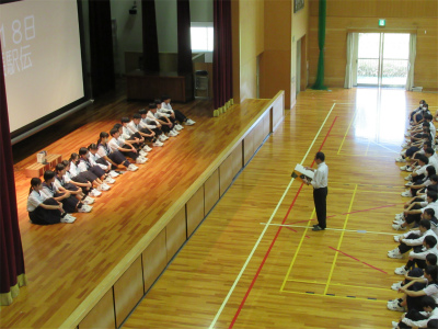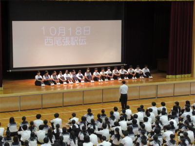 選手からは大会に挑む決意が述べられ、生徒会長・校長先生からは激励の言葉がありました。校長からは、つなぐ意識・気持ちについて話がありました。