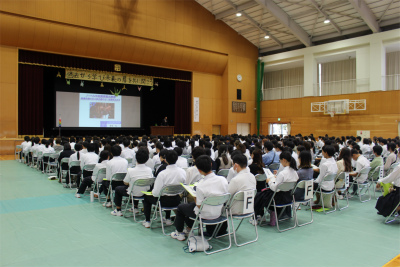 中学校に入って初めての宿泊研修になるので、生徒たちは保護者と一緒に真剣に耳を傾けて持ち物や日程についての説明を聞いていました。