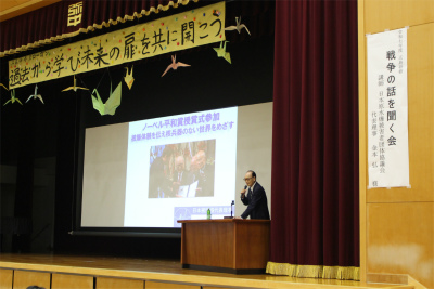 代表理事である、金本弘様による被爆体験についての講演会を開きました。貴重なお話を聞くことができました。