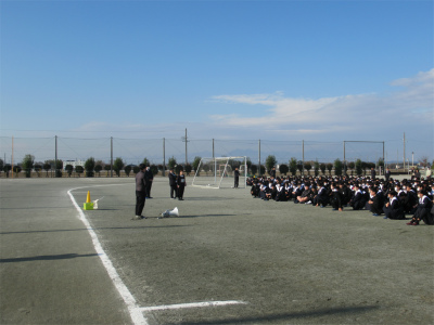 放課中に火災を想定した避難訓練で、教師を中心に生徒は、状況を判断し、落ち着いて安全な経路で避難することができました。日頃からの防災意識の大切さを改めて確認する機会となりました。校長講話では、最近起きている各地での地震についての話がありました。