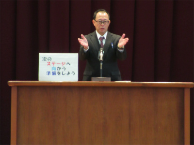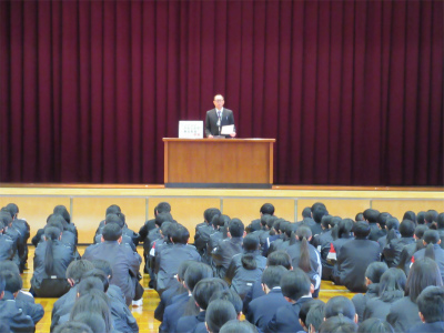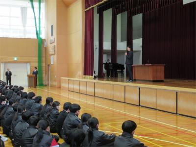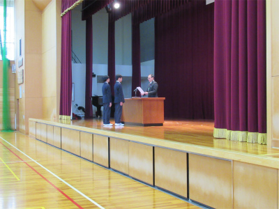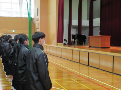 校長からは、「『十(プラス)』の『思(おもい)』で頑張ってゆけば、必ず『恵』み咲くから」という言葉をいただきました。また、命を大切にして過ごして欲しいと話がありました。