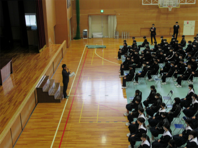 校長からは、この学年での残り少ない日数を大切にして欲しい、また、現在、冬季五輪での選手の活躍を例に、1つ1つの頑張りが次につながることについての話がありました。