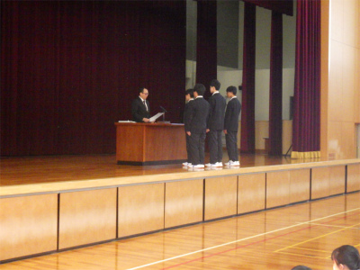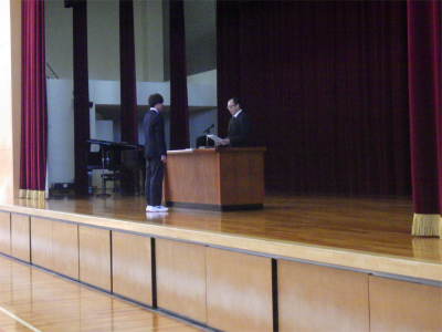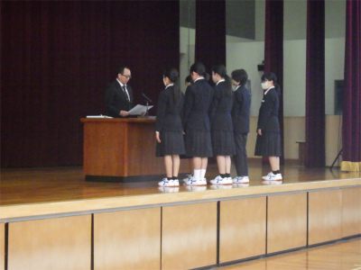 令和7年度の登校最終日、3学期中に行われた各種大会の表彰をした後、修了式が行われました。